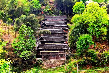 一眼的山,一眼的綠,一眼的云霧,一眼的煙雨,從吊腳樓木格花窗亮麗妖嬈走出來。經(jīng)過吊腳樓的旅人,不經(jīng)意就會站成一棵長腳的樹。