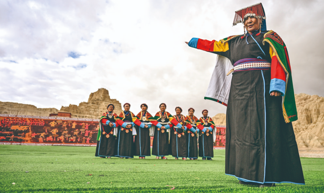“宣舞”起源于札達縣,是西藏阿里民間傳統(tǒng)舞蹈?!靶琛比诤喜貞颉⑽璧?、說唱等主要的藏民族民間藝術,內(nèi)容涵蓋藏民族宗教、禮儀、風俗、節(jié)慶等各方面的內(nèi)容。2008年,“宣舞”入選第二批國家級非物質(zhì)文化遺產(chǎn)名錄。