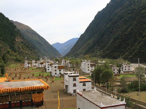 走進(jìn)冬日的丹巴縣革什扎鄉(xiāng)三道橋村,一幅如詩(shī)如畫的鄉(xiāng)村美景映入眼簾:一排排新穎別致而獨(dú)具嘉絨特色的白色藏房鑲嵌在彎彎的革什扎河旁,格外耀眼。一條條平直寬敞的硬化路像一根根潔白的哈達(dá)連接家家戶戶,寬敞平坦的公路上,轎車、農(nóng)用車、拖拉機(jī)穿梭來(lái)往,別具一格的村民活動(dòng)中心紅旗迎風(fēng)飄揚(yáng)。 這是如今的三道橋民族團(tuán)結(jié)新村。