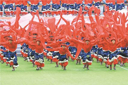 8月8日上午,康定北門體育場內(nèi)歌舞升平、彩旗飄揚(yáng),第九屆康巴藝術(shù)節(jié)開幕式文藝演出在此進(jìn)行最后一次帶妝彩排。本次彩排也讓我們對開幕式文藝演出充滿了期待。