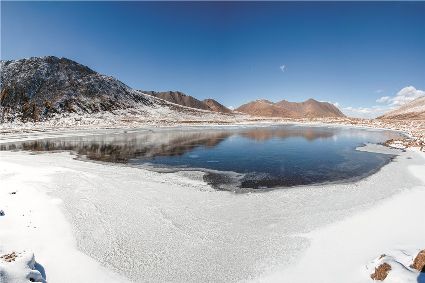 對(duì)常年生活在這片土地上的人們來說,一夜便能厚積沒履的大雪早已見慣不驚,但走出縣城一瞥石渠秋日的雪景,依舊讓人不由驚嘆大自然的鬼斧神工。不似平原、丘陵之妖嬈,石渠的雪景是宏偉壯麗的、是氣勢(shì)磅礴的,置身其中頓感渺小,心中唯余對(duì)自然之敬畏。在25191平方公里的土地上,無論草原或是山巒,入眼皆是一片耀眼的銀白,在頭頂萬(wàn)里無云的湛藍(lán)天空的輝映下,整個(gè)石渠只剩干凈的藍(lán)和純潔的白。