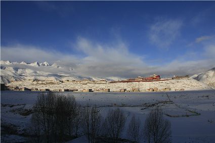 記得,離開甘孜縣城,前往滿金寺的那個早晨。同行的幾個人早早用過了早飯,趁著出發(fā)前僅有的一點(diǎn)時間,站在頂樓視野開闊的餐廳里,盼著太陽沖出來,直接把陽光大把大把地扔在大雪所覆蓋的一切事物上。天公作美,出發(fā)之前,太陽慷慨了一回。于是,一陣噼噼啪啪的快門聲響了起來,應(yīng)和著寥寥餐廳里的某種空白。