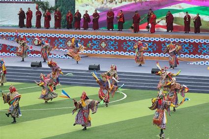 7月29日,來自四川省道孚縣各地的上萬名藏族群眾在道孚中學(xué)載歌載舞,歡慶第三屆安巴農(nóng)耕文化旅游節(jié)。安巴在藏語中是五月的意思,藏歷五月正值農(nóng)閑時(shí)期,藏族群眾都會(huì)舉行各種活動(dòng),祈禱風(fēng)調(diào)雨順,吉祥平安。