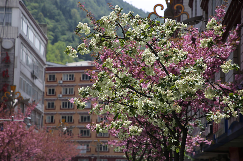 當春天遇見最美的櫻花時,驚艷了整個康定。櫻花與身邊人都將成為春日里的浪漫風景。櫻花之美,美在氣勢,櫻花紛飛,夢幻唯美。每年4月中旬,康定城北門的櫻花綻放后,人們像是約好了一樣聚集到這里,共赴這一場甜美盛宴。這一路繁花似錦,人們穿過枝椏花正盛的櫻花林,穿過粉色海洋,徑直奔向一個浪漫的童話,一路櫻花飄散,一路粉光燦爛。櫻花絢麗繽紛、陸續(xù)綻放,若恰逢一陣春風經過,櫻花瓣隨風舞動,猶如紛落的雪花,空氣中浮動著櫻花特有的淡淡香氣,令人不禁懷疑自己置身夢境?!翱刀ǖ拇禾靵淼靡硪恍?,綻放的櫻花,滿街的花草,折多河畔楊柳依依,康定的春天無比驚艷,醉了游人?!敝芟壬贿吪恼?,一邊感嘆,他在康定生活了40多年,20年前的康定,可以說找不到像樣的花草樹木,進入新時代,康定城市變美了,城市綠化走在了前面,城市的美譽度舒適度不斷提升??刀ㄖ?,春色滿園,姹紫嫣紅,風光旖旎。