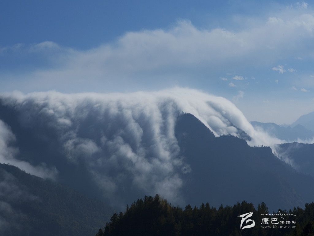 牛背山最為變幻無窮的,當屬云海。從山頂向下望去,四周云海茫茫,時而舒緩,時而洶涌,潮起潮落。當云海移至深谷處,會因為巨大的落差而形成瀑布云,似飛瀑從天而降,氣勢磅礴,蔚為壯觀。“寵辱不驚,閑看庭前花開花落;去留無意,漫隨天外云卷云舒”。云卷云舒的景象,大概只有在牛背山才能被演繹得如此淋漓盡致吧。難怪有人這樣描述牛背山:“泥巴山、瓦屋山、峨眉山、夾金山、四姑娘山和二郎山在前, 貢嘎雪山在側, 大渡河大峽谷在后, 幾乎天府之國的所有名山峻嶺在此時都變成了玲瓏盆景。而翻滾的云霧之下, 群山丘陵逐級降低, 緩緩融入稻浪翻滾的天府平原。”