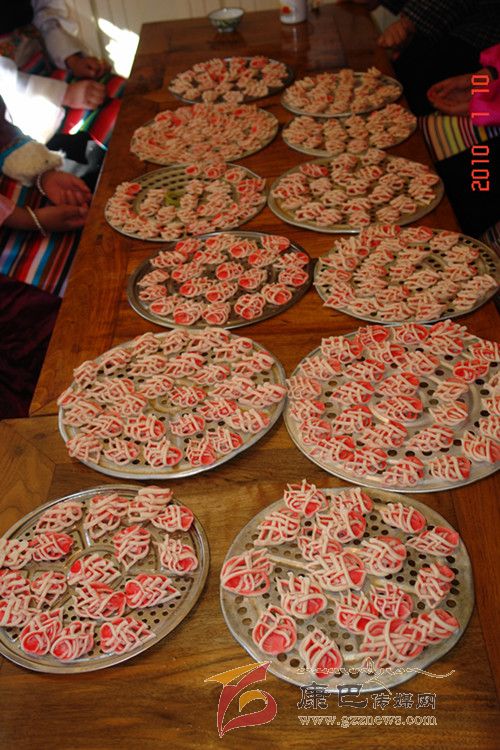 “花茹”是一種用面粉制作的糕點,是巴塘人逢年過節(jié)、婚禮慶典等節(jié)慶日不可或缺的美食佳肴,可以這樣說,在節(jié)日期間或宴請賓朋之日,在眾多的糖果糕點中,如缺少了“花茹”,便自然就失去了巴塘風(fēng)味。