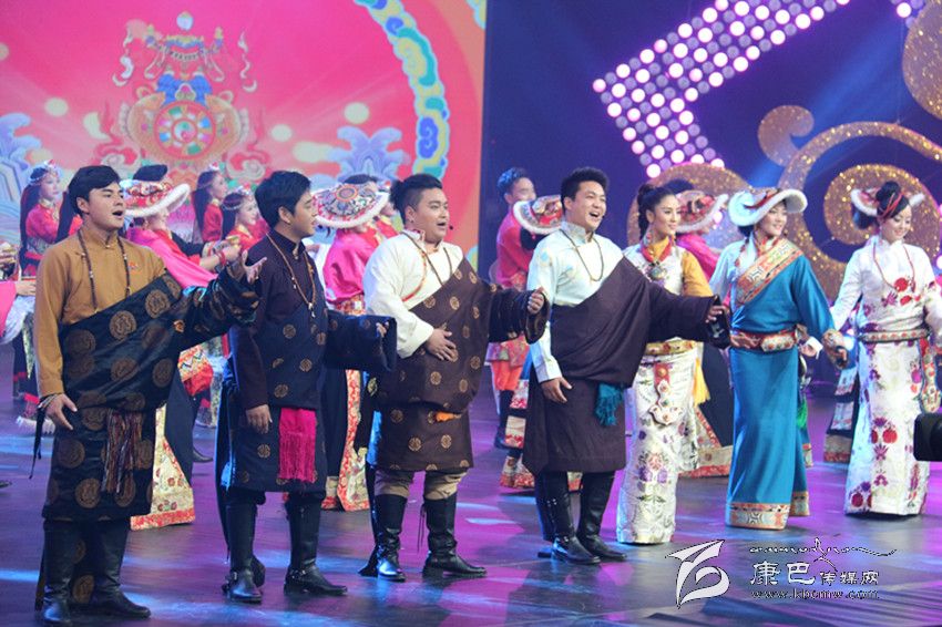 不管從哪個角度說,今年藏歷新年春晚最受觀眾待見的歌曲除了大腕們的登臺亮相以外,應該是時四川平武吉祥白馬藝術團民間歌隊、四川唐古拉風藝術團、成都央可兒民族大舞臺為觀眾展示的歌舞聯(lián)唱《我們在此歡聚》,該節(jié)目以拉歌的形式展示,幾首民間膾炙人口的歌曲,被演員們展現(xiàn)的淋漓盡致。