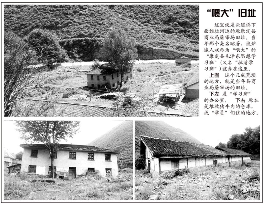 當年康定縣搞“一批雙清”,特地選在雅拉河邊上康定縣商業(yè)局的屠宰場辦了個以“催肥”為目標之一的“學習班”,其意就是要在這里將一些“不夠秤”的“5.16”“三老會”對象,“一批二斗”擠“材料”,像屠宰場催肥豬一樣“展”夠秤。所以爐城人將它戲稱為“喂大”。