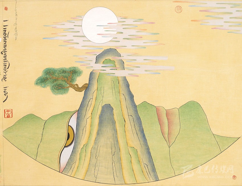 15世紀(jì)以來(lái),唐卡發(fā)展所恒定的兩個(gè)元素:一是平面構(gòu)圖的神佛之境,另一則是吸收大青綠山水精髓。正如DNA鏈的雙螺旋結(jié)構(gòu)一般,使唐卡繪畫在歷史時(shí)空中穿插縈繞,在雪域各地生根開花。到了公元20世紀(jì)初,照片的高度寫實(shí)促使藏地畫家邁出了革新步伐,使得唐卡繪畫逐漸擺脫傳統(tǒng)束縛,開啟了“人”的覺醒。衛(wèi)藏地區(qū)出現(xiàn)了“根敦群培、安多強(qiáng)巴”引入寫實(shí)主義的嘗試,成為當(dāng)今西藏“布面重彩”的先驅(qū)。新中國(guó)成立后,內(nèi)地的美術(shù)創(chuàng)作積極影響了三大藏區(qū)的繪畫發(fā)展,上世紀(jì)80年代,四川康區(qū)“甘孜藏畫”肇起,在《嶺·格薩爾王》人文主義的召喚下,《雪山兒女》《唐東杰布》《新概念唐卡》正從歷史深處一路走來(lái)。而近年來(lái),安多藏區(qū)則創(chuàng)新出了“藏族祥巴版畫”,祥巴版畫不僅是從材料技法上對(duì)西藏繪畫的豐富,更是藏地畫家們?cè)谧杂X不自覺的求新、求變;甚至在傳統(tǒng)唐卡領(lǐng)域,民間畫師也都在紛紛嘗試將傳統(tǒng)唐卡和現(xiàn)代審美相結(jié)合。這一切,正是唐卡繪畫從傳統(tǒng)走向現(xiàn)代、由宗教博衍至生活的演變過(guò)程,在這個(gè)過(guò)程里,藏地畫家不僅在畫面的形式和語(yǔ)言上完成了傳統(tǒng)與當(dāng)代的統(tǒng)一,還將西藏的審美特質(zhì)虹化為作品的精神內(nèi)核。這也是唐卡藝術(shù)第二次“從香巴拉到人間”的過(guò)程,成為民族文化發(fā)展的新坐標(biāo)。