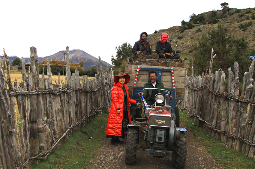 達娃卓瑪五官清秀,身材高挑,從未去過家鄉(xiāng)以外的地方,不過面對鏡頭一點也不忸怩,還擺出一個自己得意的姿勢:將左手拇指和食指伸開成漢字“八”,放在下巴之下做微笑狀。看到她我不由想起一首流傳甚廣的藏族歌曲《卓瑪》,歌中稱卓瑪是草原上的格桑花,在藏地有數(shù)不清的女子叫卓瑪,也有數(shù)不清的格桑花。