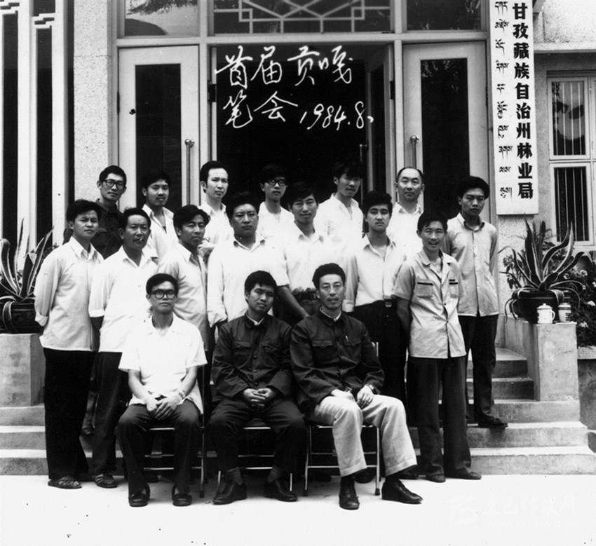 我們也在籌備,這就是《貢嘎山》雜志創(chuàng)辦以來的第一次筆會。根據(jù)當時我州作者的創(chuàng)作情況,編輯們商議決定搞一次筆會,這次筆會以小說創(chuàng)作為主。當時我州的詩歌創(chuàng)作非?;钴S,很多從學校出來參加工作的年青作者都很喜歡詩歌創(chuàng)作,創(chuàng)作水平也還不錯,而且還活躍著很多的文學社團,散文寫作的人也不少,唯獨就是小說創(chuàng)作始終在作者人數(shù)和質量上都達不到刊物的要求。針對這種現(xiàn)狀,我們對當時發(fā)表和寫過小說的所有作者都進行統(tǒng)計,并發(fā)出了參加筆會的約稿信,并決定1984年8月在康定姑咱鎮(zhèn)林業(yè)管理局招待所舉辦首屆《貢嘎山》筆會,通過近一年的準備,檢視作者來稿情況確定了18位作者(一名女作者)參加首屆《貢嘎山》筆會,他們是仁真旺杰、高旭帆、胡杰、劉富貴、王浩東、宋濤、格妮措、杜仁信、王方霖、劉述義、孫浩東、牟子、朱長安等,郭昌平參加了開班后有事走了,給我們留下這張珍貴的合影照片。