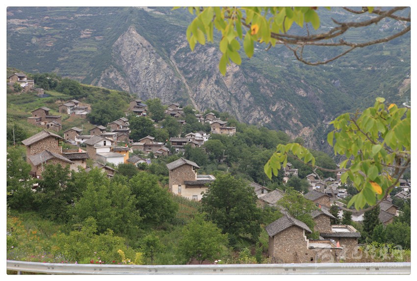 至此,似乎明了:在大渡河的東岸,在南北向布列的橫斷山脈(群)的夾金山系里,照常分布著眾多山的凹槽(山溝)——或深或淺,或寬或窄,方向不定;而麥崩鄉(xiāng)所轄的村莊,幾乎都位于山溝兩側比較平緩的山坡臺地上。比如,昌昌村與對面山上的景點之間,就隔著一條大溝;昌昌村與下火地村之間,也隔著一條大溝;下火地村與景點所在的那座山,也隔著一條大溝了。