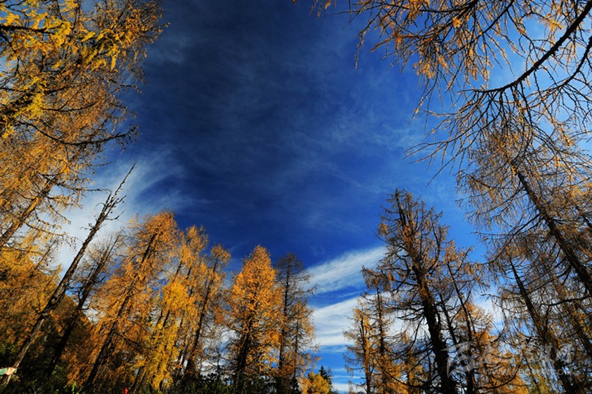 在這里,樹木、山峰、湖泊是如此的層次分明,一層一層的樹木有綠色、黃色、紅色,不同的色彩相互映襯,層林盡染,金碧輝煌,在連綿的群山之間頑強(qiáng)地生長(zhǎng)著,吸允天地之精華,與山水為伴,與日月同輝。