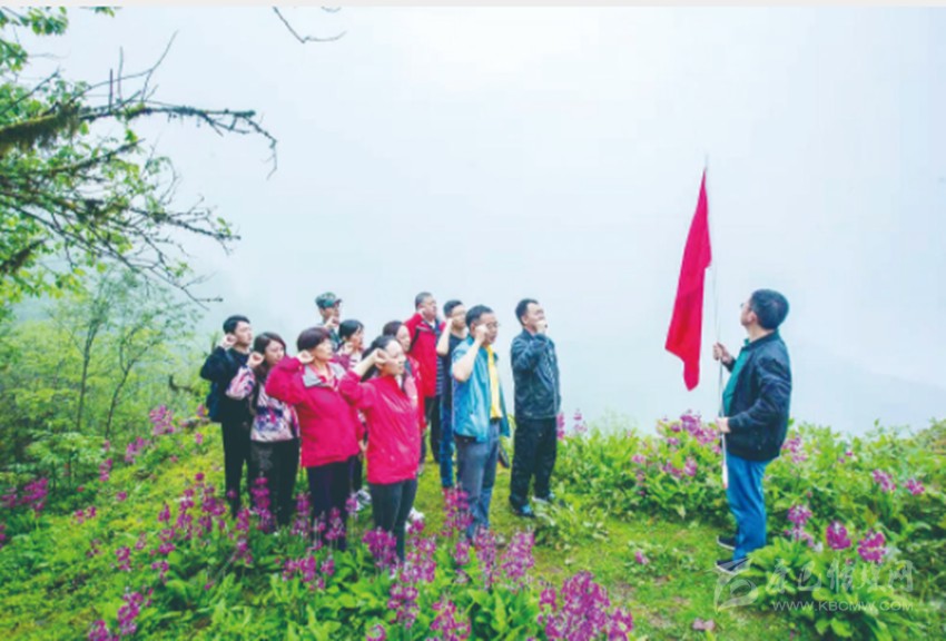 “激戰(zhàn)飛越嶺,千古留芳名。”埡口海拔2800多米,山嵐氤氳,雖然有些涼意,但我們熱血沸騰、我們在這里擎旗列隊,向英勇無畏、長眠于此的革命先烈致敬。同時握拳宣誓,重溫入黨誓詞。