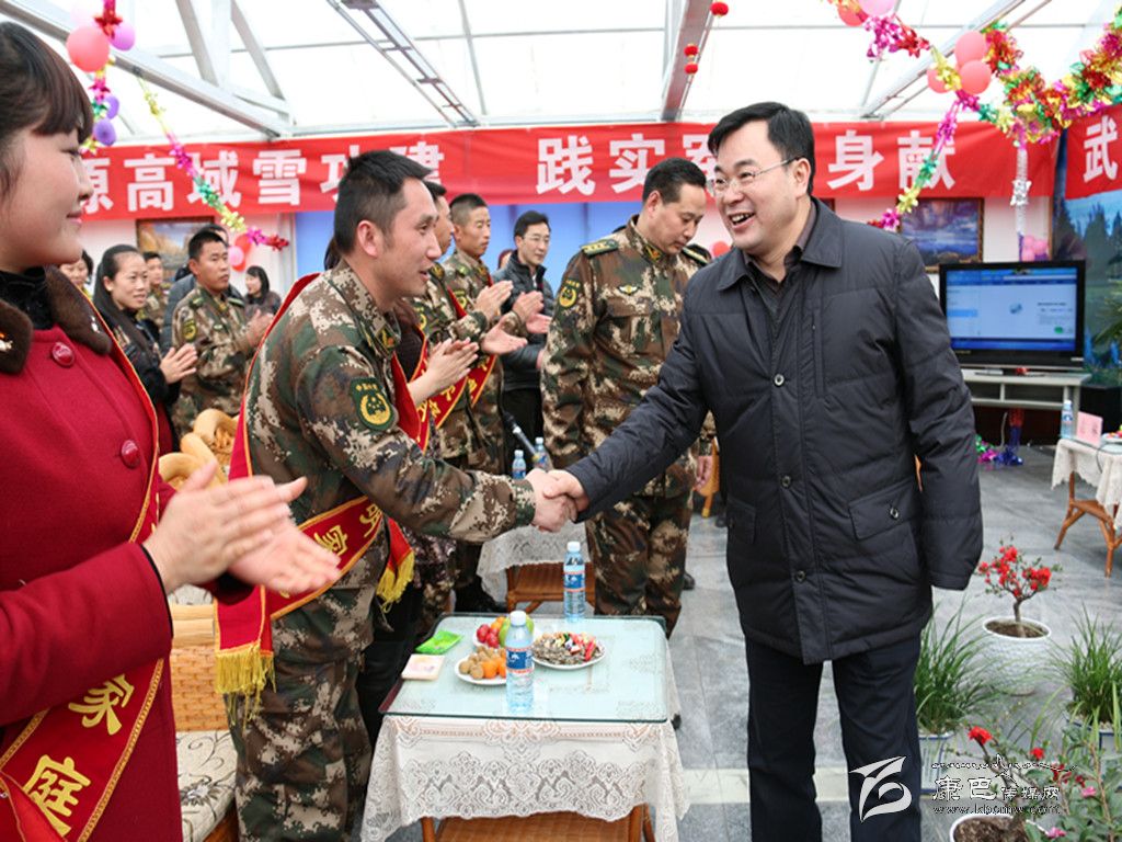 本網(wǎng)訊(記者 張濤 文/圖) 大年初二(2月20日)下午,州委書記胡昌升專程來(lái)到武警二支隊(duì)與各位軍人家屬歡聚一堂,共度新春佳節(jié)。代表州委、州政府和百萬(wàn)甘孜兒女,對(duì)來(lái)康定過(guò)年的35名軍嫂表示熱烈歡迎,對(duì)各位軍嫂為甘孜發(fā)展穩(wěn)定和民生所做出的無(wú)私奉獻(xiàn)表示衷心感謝,向全州廣大軍屬致以崇高敬意!