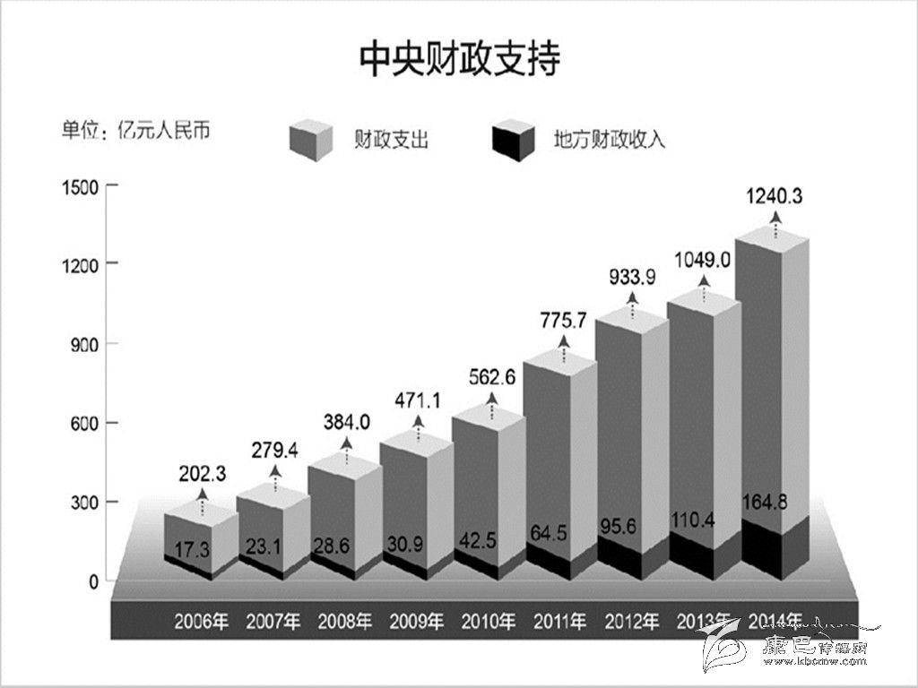 中央政府歷來高度重視西藏的發(fā)展,十分關(guān)心西藏各族人民的福祉,舉全國之力支援西藏,以優(yōu)惠的政策和強(qiáng)大的人力、物力、財(cái)力支持,推動西藏的發(fā)展進(jìn)步。從1952年到2014年,中央政府對西藏的各項(xiàng)財(cái)政補(bǔ)助達(dá)6480.8億元,占西藏地方公共財(cái)政支出的92.8%。1980年以來,中央先后六次召開西藏工作座談會,從中國社會主義現(xiàn)代化建設(shè)全局出發(fā),對西藏的發(fā)展建設(shè)作出整體規(guī)劃。從1994年第三次西藏工作座談會開始,中央實(shí)施對口支援西藏的政策,安排60個中央國家機(jī)關(guān)、18個省市和17家中央企業(yè)對口支援西藏。20年來,先后有七批4496名優(yōu)秀干部、1466名專業(yè)技術(shù)人才進(jìn)藏工作,實(shí)施援藏項(xiàng)目7615個,投入援藏資金260億元,主要用于改善民生和基礎(chǔ)設(shè)施建設(shè),為西藏經(jīng)濟(jì)社會發(fā)展作出了重要貢獻(xiàn)。