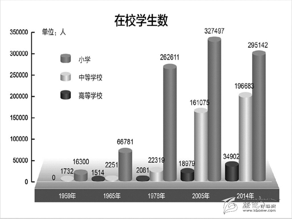 教育事業(yè)日新月異,實(shí)現(xiàn)學(xué)有所教。全區(qū)所有縣(區(qū))全面完成普及九年義務(wù)教育,一個涵蓋學(xué)前教育、基礎(chǔ)教育、職業(yè)教育、高等教育、成人教育、特殊教育的比較完整的現(xiàn)代教育體系已經(jīng)形成。實(shí)現(xiàn)了從學(xué)前到高中階段15年免費(fèi)教育,農(nóng)牧區(qū)義務(wù)教育學(xué)生營養(yǎng)改善計(jì)劃全面落實(shí),政策和資金覆蓋率均達(dá)到100%。“三包”(包吃、包住、包學(xué)習(xí)費(fèi)用)政策覆蓋學(xué)前教育到高中階段所有農(nóng)牧民子女和城鎮(zhèn)困難家庭子女,且不斷提高標(biāo)準(zhǔn),年生均標(biāo)準(zhǔn)已提高到3000元。全面啟動實(shí)施城鎮(zhèn)三年、農(nóng)牧區(qū)兩年學(xué)前雙語教育工程。2014年底,幼兒園在園幼兒達(dá)8萬多人,學(xué)前教育毛入園率達(dá)60%。2014年底,全區(qū)擁有普通高等院校6所;中等職業(yè)學(xué)校9所,在校生1.7萬人;高級中學(xué)22所,完全中學(xué)4所,初級中學(xué)93所,十二年和九年一貫制學(xué)校各3所,小學(xué)829所。小學(xué)適齡兒童入學(xué)率達(dá)到99.64%,青壯年文盲率下降至0.57%以內(nèi),人均受教育年限達(dá)到8.6年,新增勞動力受教育年限達(dá)到12年以上。1984年,中央政府作出“在內(nèi)地為西藏辦學(xué)培養(yǎng)人才”的重大戰(zhàn)略決策,現(xiàn)有21個省市辦有西藏班(校),已累計(jì)為西藏培養(yǎng)了大中專畢業(yè)生3.2萬余人。目前西藏不僅有了自己培養(yǎng)的碩士、博士,而且有了一批享譽(yù)全國的專家、學(xué)者,逐步建立了近30個科研院所,有各類專業(yè)技術(shù)人員69709人,學(xué)科領(lǐng)域涉及歷史、經(jīng)濟(jì)、人口、語言、宗教和農(nóng)業(yè)、畜牧、林業(yè)、生態(tài)、生物、藏醫(yī)藥、鹽湖、地?zé)?、太陽能等?shù)十個門類。其中,藏學(xué)、高原生態(tài)、藏醫(yī)藥等學(xué)科研究在全國處于領(lǐng)先水平,產(chǎn)生了一批有世界影響的學(xué)術(shù)成果。