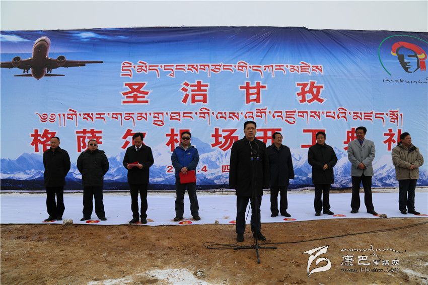 益西達瓦在致辭中指出,甘孜格薩爾機場是繼康定機場、稻城亞丁機場之后,我州建設(shè)的第三個機場,項目投資22.88億元,力爭2017年10月建成試飛。甘孜格薩爾機場的開工建設(shè),是我州實施“交通先行”戰(zhàn)略的重大舉措,對進一步加快我州經(jīng)濟社會全面協(xié)調(diào)可持續(xù)發(fā)展具有十分重要的意義。該機場的建成,必將開啟我州“十三五”發(fā)展的新征程,必將推動我州經(jīng)濟社會實現(xiàn)新跨越,必將促進我州旅游等產(chǎn)業(yè)實現(xiàn)新發(fā)展,必將加快我州農(nóng)牧民群眾脫貧奔康的新步伐。他說,建設(shè)甘孜格薩爾機場是全州人民特別是北路群眾多年的期盼,機場規(guī)劃在“十一五”、爭取在“十二五”、建設(shè)在“十三五”,飽含著中央領(lǐng)導(dǎo)和國家部委的厚愛,體現(xiàn)著省委、省政府的重視,凝聚著歷屆州委、州政府的心血,我們一定要倍加珍惜,一定要把甘孜格薩爾機場建設(shè)成一流的高原機場。希望甘孜、德格兩縣通力合作、協(xié)調(diào)配合,切實為機場建設(shè)營造良好的外部環(huán)境;希望州級相關(guān)部門簡化程序、搞好服務(wù),切實為該機場建設(shè)開辟“綠色”通道;希望廣大人民群眾多理解、多支持,切實擁護機場的各項建設(shè);希望各參建單位和廣大建設(shè)者發(fā)揚“亞丁機場精神”,努力把甘孜格薩爾機場建設(shè)成為一流的標(biāo)桿工程。