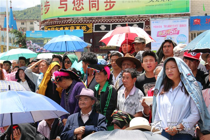 儀式上,當(dāng)擁金措、貢桑吉和布姆分別演唱了《世紀(jì)情白玉夢》、《欽諾》和《康巴之戀》時,場下掌聲不斷。接著,當(dāng)州民族歌舞團(tuán)的小伙們跳起歡快的《踢踏》時,在場的觀眾立刻與之互動,并不時爆發(fā)出熱烈掌聲。
