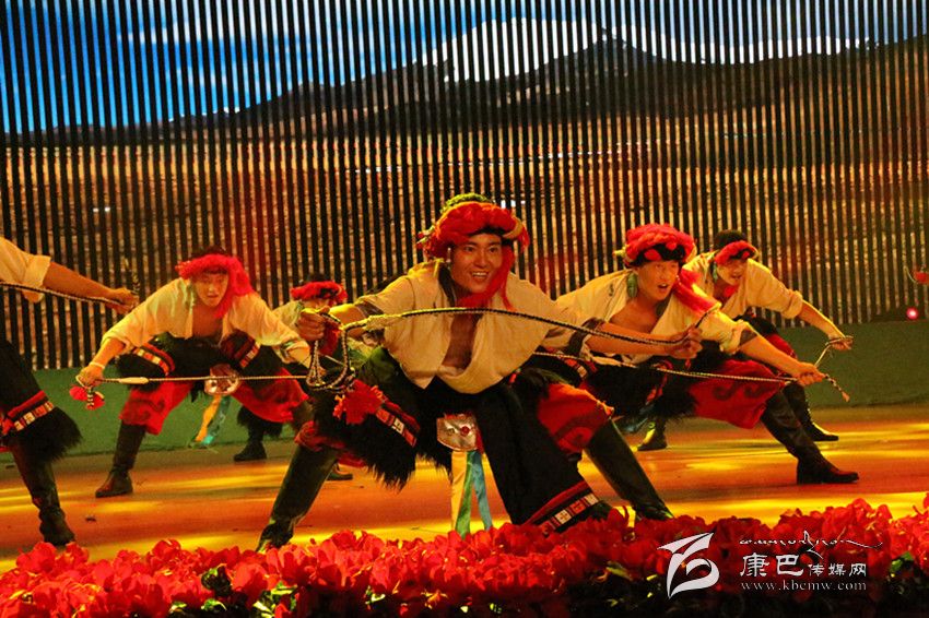20點(diǎn)整,演出在民樂演奏《康定情歌》中拉開序幕。30名身著各色民族服飾的演員用管、弦、鼓、號(hào)、鈴等各類傳統(tǒng)樂器向大家重述了優(yōu)美動(dòng)人的康定情事。稍后的《鈸舞》、《踏鈴》和《康巴漢子》讓現(xiàn)場(chǎng)熱度直線飆升。取材于格薩爾說唱故事的《格薩爾禮贊》更讓現(xiàn)場(chǎng)觀眾震撼無比。最終,演出在歌曲《美麗的康巴我的家》中落下帷幕。在近80分鐘的表演中,演員們用歡騰的歌聲、飛揚(yáng)的舞步、火熱的激情,激蕩著在場(chǎng)觀眾的心緒,使現(xiàn)場(chǎng)響起一陣陣熱烈的掌聲。