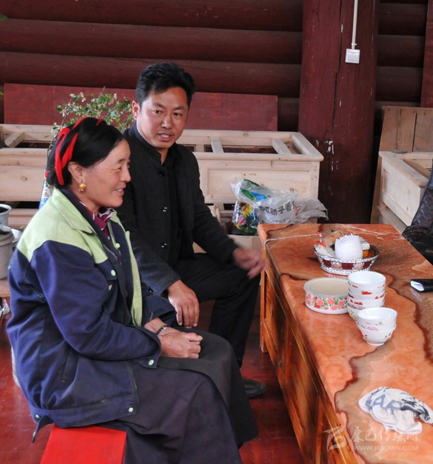 藏族支書(shū)郎吉正在介紹村里建設(shè)綠色蔬菜基地的情況。