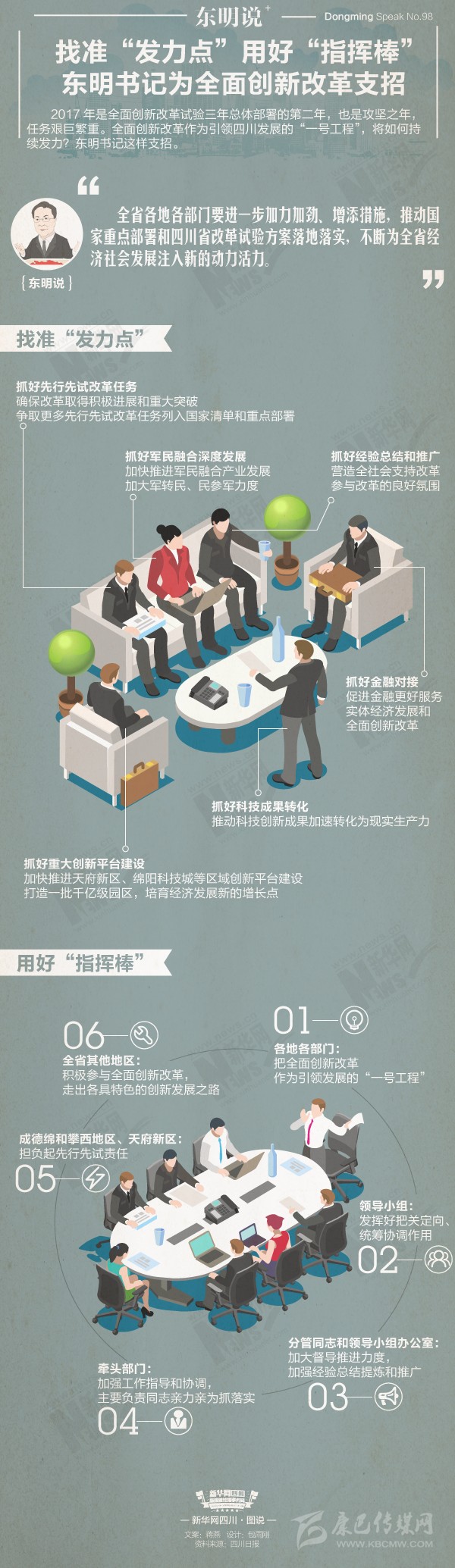 2017年是全面創(chuàng)新改革試驗(yàn)三年總體部署的第二年,也是攻堅(jiān)之年,任務(wù)艱巨繁重。全面創(chuàng)新改革作為引領(lǐng)四川發(fā)展的“一號(hào)工程”,將如何持續(xù)發(fā)力?王東明書記這樣支招。