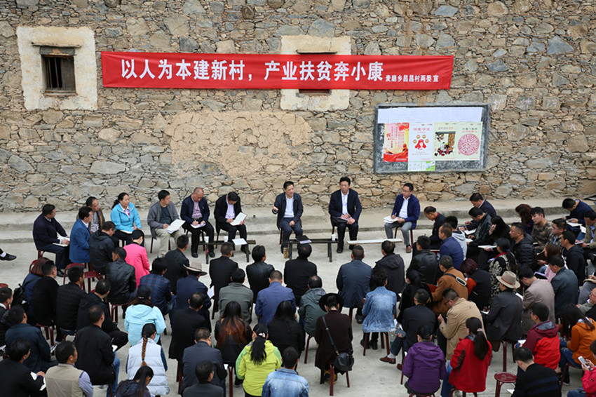 圖為劉成鳴在麥崩鄉(xiāng)昌昌村以壩壩會形式與大家座談。