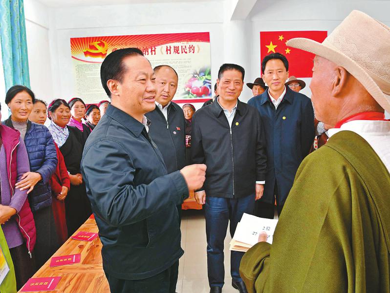 在村民澤翁家中,彭清華細致察看整修后的旅游民宿,了解房屋結(jié)構(gòu)功能、抗震設防標準和修建費用等,與一家人拉家常、聊增收,鼓勵他們再接再厲,把日子越過越好。雅德鄉(xiāng)交納村平均海拔3300米,是典型的高原藏區(qū)貧困村。彭清華沿著崎嶇的山路步行來到貧困戶亞瑪忠登和根呷家中,與他們圍坐在一起,共同分析致貧原因和脫貧進展,詳細了解各項幫扶措施落實情況,為他們脫貧增收鼓勁支招。在交納村村委會辦公室,彭清華與在這里參加合作社入股分紅活動的村民們親切交談。他對在場的村干部和鄉(xiāng)親們說,習近平總書記、黨中央十分牽掛藏區(qū)群眾,對扎實做好藏區(qū)經(jīng)濟發(fā)展、民生改善和社會和諧穩(wěn)定特別是脫貧攻堅等方面工作作出一系列重要指示、提出明確要求。我們要認真學習領(lǐng)會、堅決貫徹落實。希望鄉(xiāng)親們始終銘記習近平總書記的深切關(guān)懷,進一步堅定脫貧信心,大力發(fā)展生產(chǎn),積極學習技術(shù),尤其要重視孩子們的培養(yǎng)教育,讓適齡少年兒童都能接受義務教育,堅決阻斷貧困代際傳遞。要充分發(fā)揮群眾的積極性和主動性,引導村民依靠自己的辛勤勞動拔窮根、摘窮帽,早日脫貧致富奔小康。
