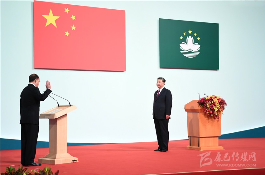 慶祝澳門回歸祖國20周年大會暨澳門特別行政區(qū)第五屆政府就職典禮20日上午在澳門東亞運動會體育館隆重舉行。中共中央總書記、國家主席、中央軍委主席習近平出席并發(fā)表重要講話。他指出,澳門回歸祖國20年來,澳門特別行政區(qū)政府和社會各界人士同心協(xié)力,開創(chuàng)了澳門歷史上最好的發(fā)展局面,譜寫了具有澳門特色的“一國兩制”成功實踐的華彩篇章。他希望澳門特別行政區(qū)新一屆政府和社會各界人士站高望遠、居安思危,守正創(chuàng)新、務實有為,在已有成就的基礎(chǔ)上推動澳門特別行政區(qū)各項建設(shè)事業(yè)躍上新臺階。
