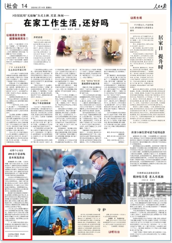 2月14日出版的《 人民日報 》報道了成都市為有效應對疫情穩(wěn)定經(jīng)濟運行,出臺20條政策措施,保障市民生活物資供應的舉措。目前,成都市市場供應充足。