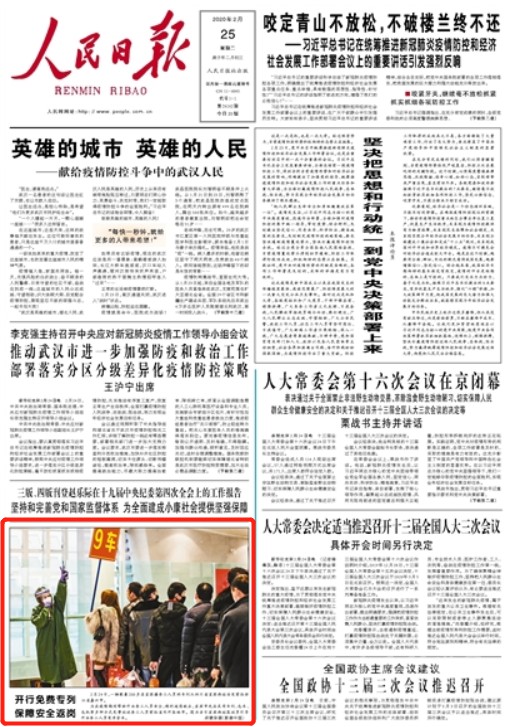 2月25日,《人民日報(bào)》刊登題為《開行免費(fèi)專列 保障安全返崗》的報(bào)道,聚焦川籍務(wù)工人員的免費(fèi)返崗專列。