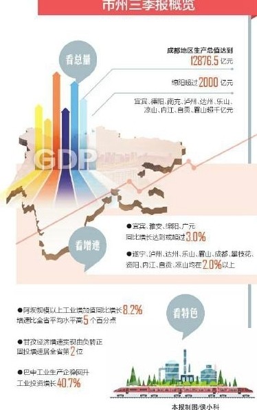 從增速看,宜賓、雅安、綿陽、廣元4市增速“破3”,宜賓達(dá)到3.3%;上半年一度負(fù)增長的4個(gè)市州也全面扭轉(zhuǎn)下滑勢頭,前三季度增速全部轉(zhuǎn)正。