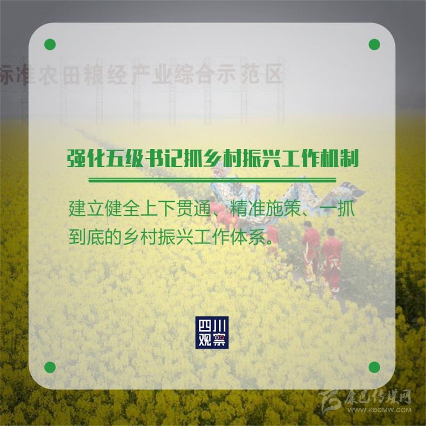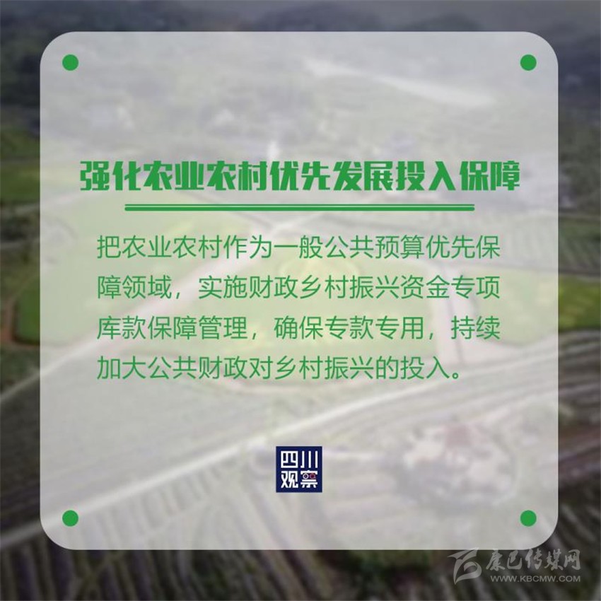 近日,中共四川省委、四川省人民政府印發(fā)《關(guān)于全面實(shí)施鄉(xiāng)村振興戰(zhàn)略開啟農(nóng)業(yè)農(nóng)村現(xiàn)代化建設(shè)新征程的意見》,全文共7個(gè)部分41條,這是2004年以來,四川省委、省政府連續(xù)18年,以省委一號文件形式部署“三農(nóng)”工作。文件提出了哪些硬舉措?
