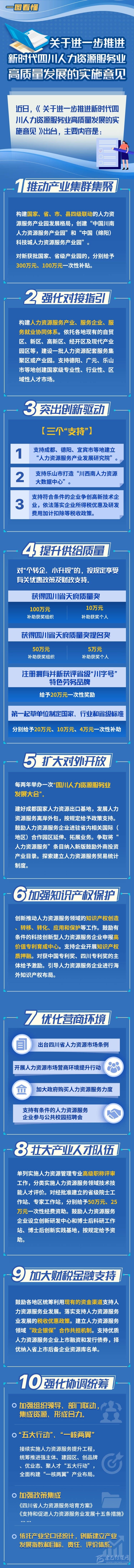 ●優(yōu)化營商環(huán)境。出臺四川省人力資源市場條例。開展人力資源市場營商環(huán)境提升行動。加大政府購買人力資源服務力度。支持有條件的人力資源服務企業(yè)參與公共校園招聘會。