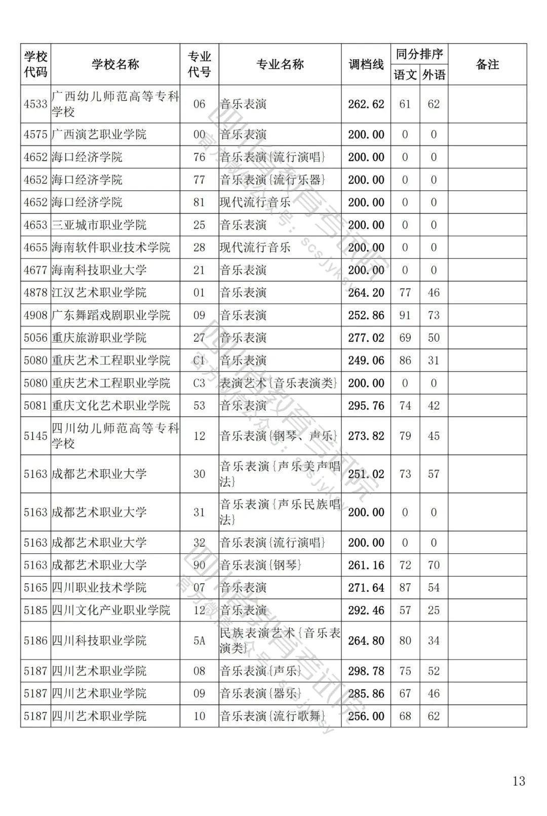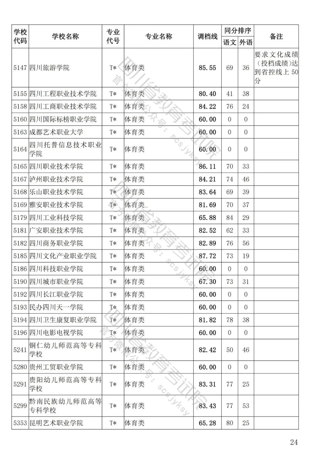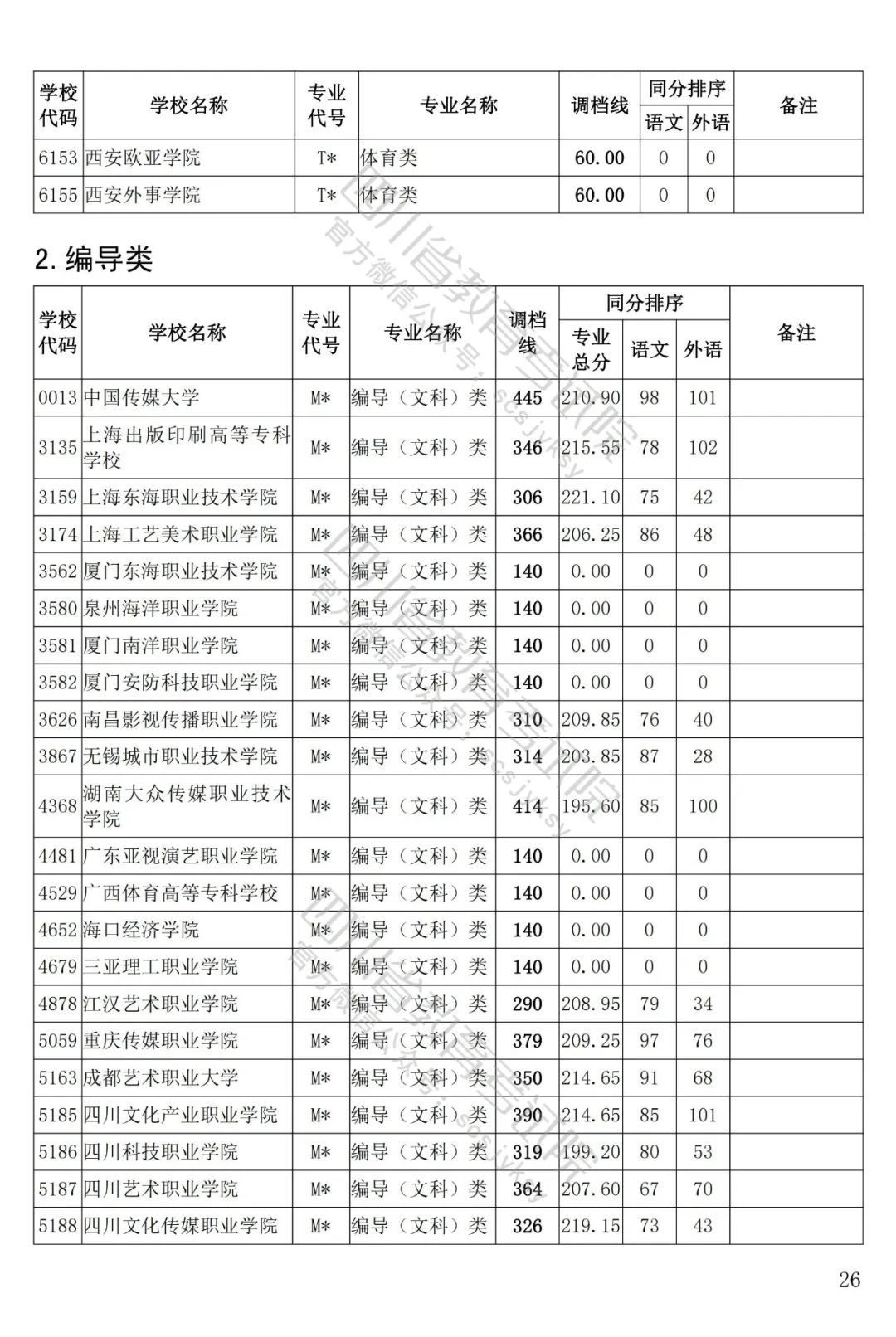 四川省2022年藝術(shù)體育類??婆{(diào)檔線出爐