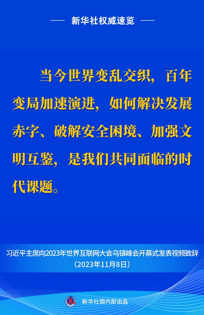 新華社權威速覽丨習近平主席向2023年世界互聯(lián)網(wǎng)大會烏鎮(zhèn)峰會開幕式視頻致辭金句