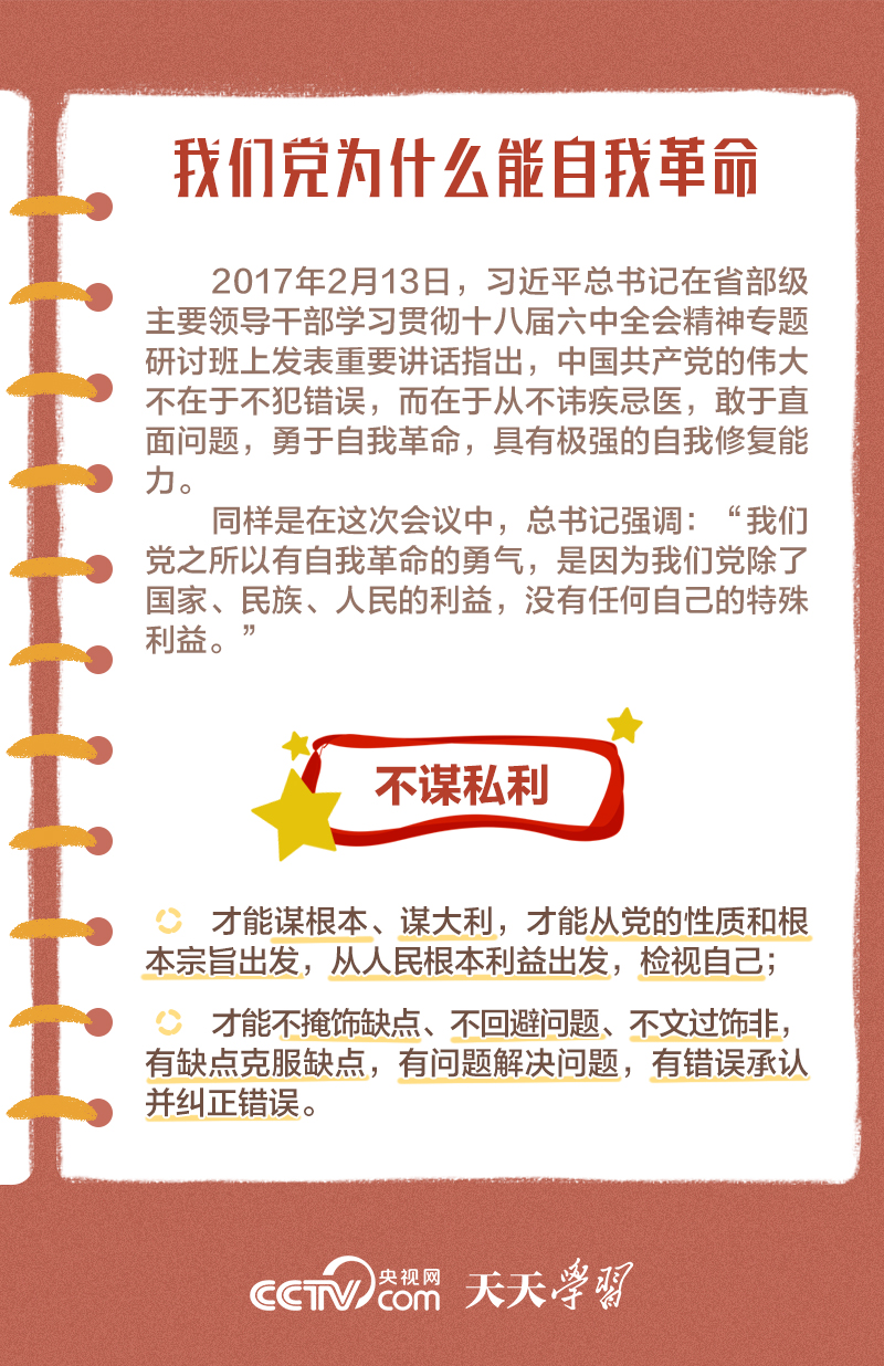 勇于自我革命是我們黨最鮮明的品格和最大的優(yōu)勢(shì),總書(shū)記多次對(duì)推進(jìn)黨的自我革命作出重要部署。此次會(huì)議上,總書(shū)記深刻闡述了黨的自我革命的重要思想,明確提出需要把握好九個(gè)問(wèn)題,并對(duì)持續(xù)發(fā)力、縱深推進(jìn)反腐敗斗爭(zhēng)作出戰(zhàn)略部署。央視網(wǎng)《天天學(xué)習(xí)》與您一起學(xué)習(xí)。