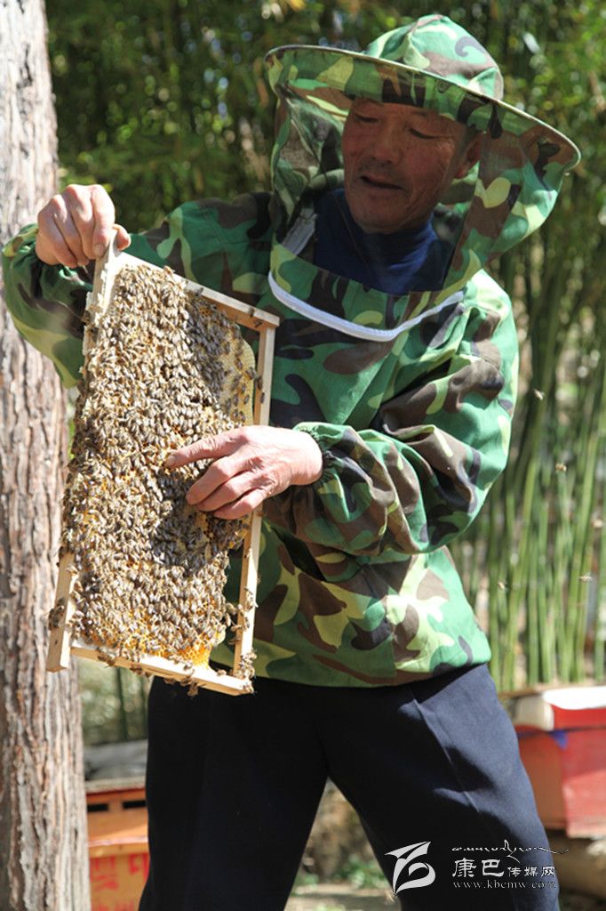 1974年,因?yàn)轲B(yǎng)蜂,高廷明成了割“尾巴”的對象,被連續(xù)批斗了好幾個晚上。但所有這些,都沒有阻擋他養(yǎng)蜂的喜好,反而激發(fā)了他發(fā)展壯大養(yǎng)蜂業(yè)的欲望。“我們這里有桃花、李花、金銀花、油菜花,山上還有成片的五倍子花,五倍子花粉成糖顏色最好,金銀花蜜則有藥用價值。養(yǎng)蜂講究‘三睛兩雨’,最好是晚上下雨,白天出太陽,這種天氣花粉最好,產(chǎn)糖高。由于人手不夠,我都采用小轉(zhuǎn)場放蜂,一般只轉(zhuǎn)場兩、三公里,走遠(yuǎn)了一個人不方便。采蜜時要把準(zhǔn)季節(jié),要不然會出現(xiàn)人與蜜蜂搶蜜的現(xiàn)象,說不定還會被蜜蜂蟄傷。”在院子后面的一片樹林里,高廷明一邊分蜂一邊對記者說。他還告訴記者,雖然自己天天與蜜蜂打交道,這些有靈性的小家伙似乎已經(jīng)習(xí)慣主人的氣味,但自己還是被蜜蜂蟄傷過。每次被蜜蜂蟄傷時,家里的碘酒就派上了用場。