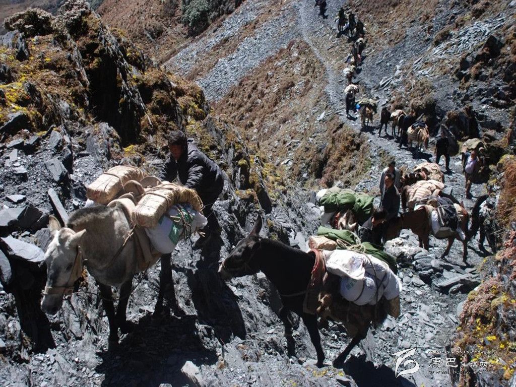 工作組在山道上運送物資︒
