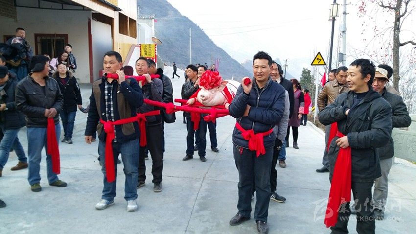 新年的第一縷陽(yáng)光灑滿瀘定縣興隆鎮(zhèn)和平村,寂靜的山村在暖意融融的陽(yáng)光中蘇醒過來(lái),隨著春節(jié)的臨近,辛苦勞作了一年的村民,家家戶戶開始?xì)⒛曦i迎新年。年豬文化已成為當(dāng)?shù)貍鞒芯眠h(yuǎn)的民俗文化。為適應(yīng)全域旅游的需要,興隆鎮(zhèn)和平村已經(jīng)連續(xù)幾年舉辦年豬文化節(jié),鄉(xiāng)村旅游不斷升溫,村民告訴筆者,和平村殺年豬比過春節(jié)還熱鬧,而且殺年豬的過程非常講究,選日子、焚香、祈福一樣都不能少。新年第一天,和平村年豬文化節(jié)盛大開幕,年豬味兒,新年味兒十足。
