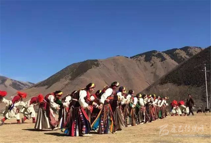 在這個只有300余人的小村,就有近60位青壯年參加了節(jié)目組織和排演,為了讓節(jié)目更加出彩,康定市文化館館長以及舞蹈編排老師,多次深入村莊,與村民同吃同住,從排演隊(duì)形開始,耐心的指導(dǎo)每一個舞步、糾正每一個動作。雖然參與人員的全部是業(yè)余演出人員,但是他們卻有著百分百的敬業(yè)精神,每天農(nóng)忙結(jié)束,大家就聚集在一處學(xué)習(xí)新動作。只要是有演出經(jīng)驗(yàn)的人就會知道,數(shù)十人的群舞最難的地方就是演員之間的相互協(xié)調(diào),而這種難題只有通過反復(fù)排練才能解決。一群人只有將節(jié)目演好這樣一個堅(jiān)定的信念,所以即使在寒冷的冬夜,即使要跳到凌晨一兩點(diǎn)鐘,也沒有人抱怨。
