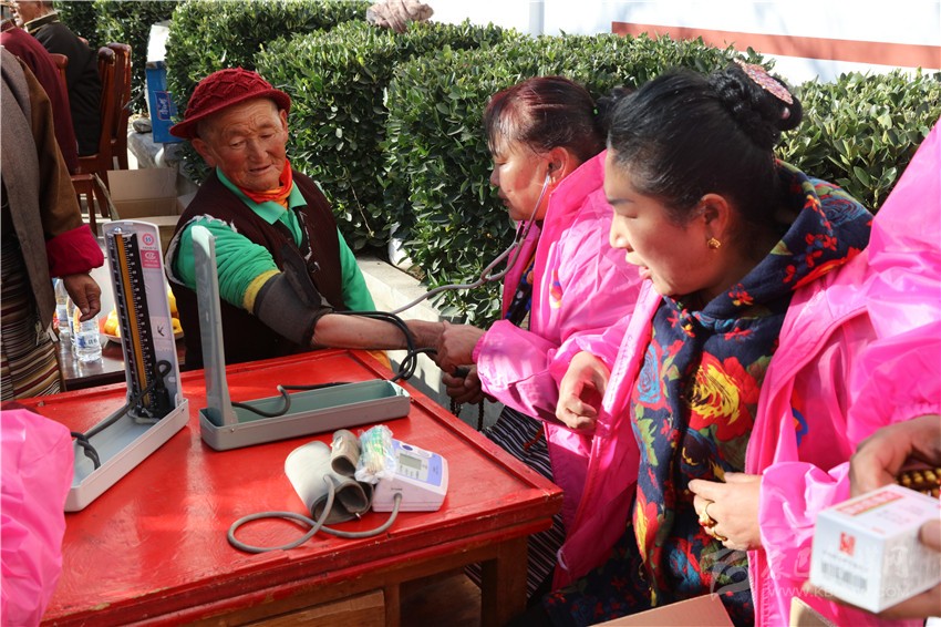 “我們送來的衣服和鞋子都是為老人們量身定制的,愿老人們健康快樂?!敝驹刚咧粳斦f。圖為志愿服務現(xiàn)場。