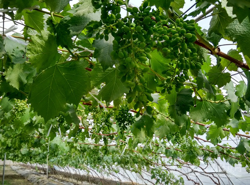 拉薩市曲水縣才納鄉(xiāng)國家現(xiàn)代農(nóng)業(yè)示范園區(qū)大棚里的葡萄掛滿枝頭。