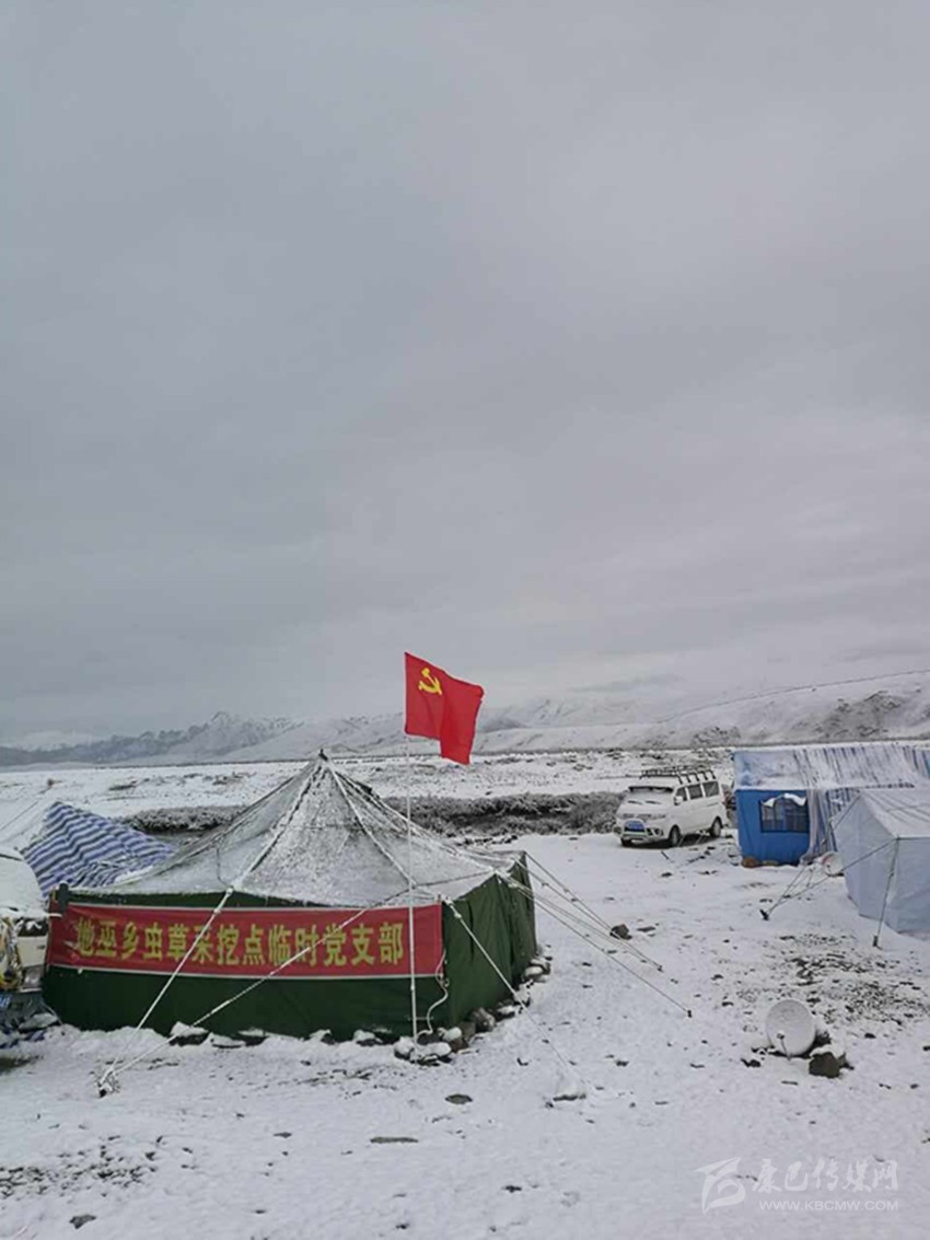 4000米高的雪域高原上,有一道特殊的風(fēng)景線,那就采挖蟲草點(diǎn)臨時(shí)黨支部帳篷上的黨旗。