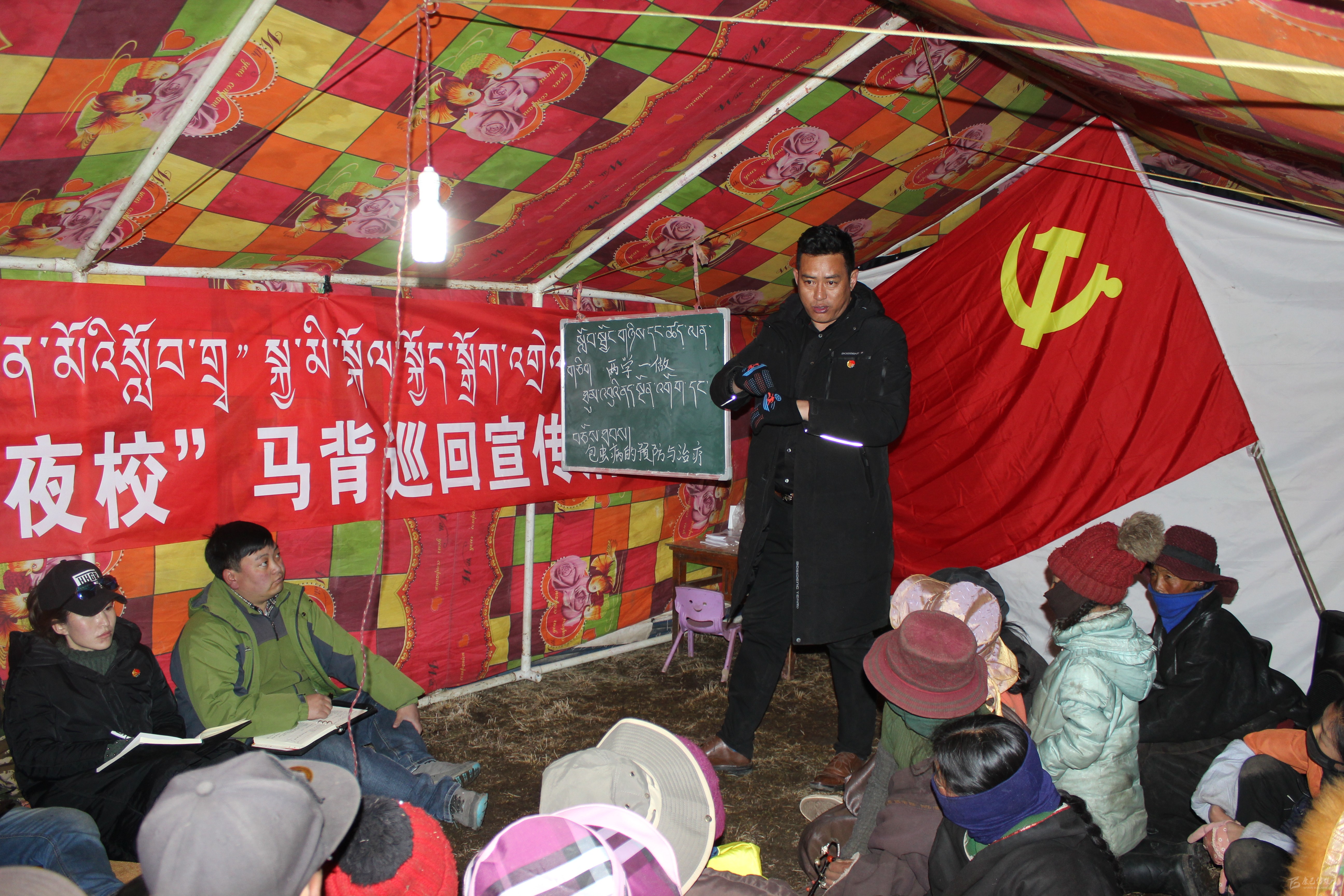宣講隊白天在海拔近5000米的蟲草采挖點宣講,晚上又組織蟲草采挖點的群眾開辦 “農(nóng)牧民帳篷夜校”, 將“農(nóng)牧民帳篷夜?!弊鳛椤皬娀鶎印娀A(chǔ)、聚人心、聚才智”的重要舉措,采用藏漢雙語宣講、現(xiàn)身說法、播放教育片等方式,向農(nóng)牧民群眾宣傳基層黨建、精準扶貧、包蟲病綜合防治、安全生產(chǎn)等,切實把“農(nóng)牧民帳篷夜校”辦成農(nóng)牧民快速提升能力的平臺,將課堂帶進帳篷,將知識帶上雪山。同時,該鎮(zhèn)還充分利用現(xiàn)代信息手段,整合有效資源,建立色須鎮(zhèn)“農(nóng)牧民帳篷夜?!蔽⑿耪n堂。按照“以點帶面、以面蓋片”的傳播方式,向廣大農(nóng)牧民群眾及時宣講各項惠民惠農(nóng)政策。