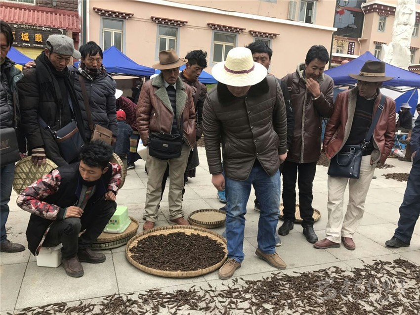 理塘縣素有“世界高城”之稱,因海拔高,出產(chǎn)的蟲草具有蟲長草短、質(zhì)堅(jiān)色黃、斷面黃白、氣香味鮮等特點(diǎn)。由于理塘縣是我州南路最大的蟲草產(chǎn)區(qū),在每年5月至6月蟲草采集季節(jié),全縣24個鄉(xiāng)(鎮(zhèn))、州內(nèi)其它縣的3萬余名采集人員集中涌入曲登等四鄉(xiāng)主產(chǎn)區(qū)采集蟲草。農(nóng)牧民群眾把采集到的蟲草賣給收購藥材的老板,在這些老板中,不僅有開公司的傳統(tǒng)商人,還有開網(wǎng)店的大學(xué)生。