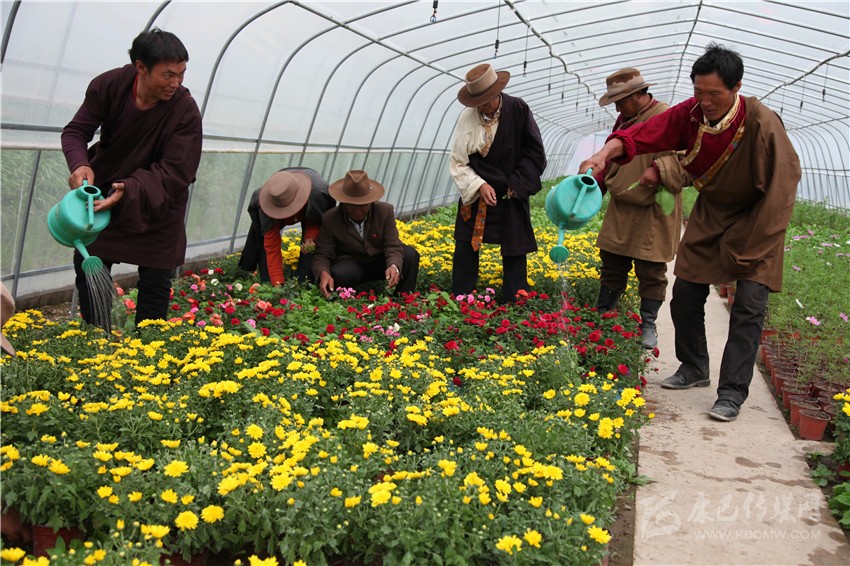 當(dāng)記者返回集中安置點(diǎn)時(shí),白瑪澤仁興致勃勃地帶記者參觀了位于新村下側(cè)的花卉種植合作社。在呈左右布局的5個(gè)大棚內(nèi),長(zhǎng)勢(shì)喜人的20多種花卉,有的含包待放,有的鮮花盛開,有的枝繁葉茂。村主任多吉與幾個(gè)村民正在大棚里小心翼翼地除草、灑水??匆娂磳ⅰ白儸F(xiàn)”的一盆盆花卉,白瑪澤仁激動(dòng)地說:“我們不但很快就要搬新村、住新房,而且種花種出了財(cái)源、也種掉了貧困,今年全村整體脫貧肯定沒問題。這一系列變化既是黨和政府給的,也是全村群眾干出來的,我們盼望早日下山,我們更期待盡快致富。我們這里位置很好,離縣城和白玉、江達(dá)(西藏)兩縣都很近,明年我們將在花卉大棚的下方建花園、修賞花亭、搞餐飲住宿,讓過往客人在賞花、觀江、吃農(nóng)家菜、住農(nóng)家屋、購(gòu)農(nóng)家物的同時(shí),力求給村民和村集體經(jīng)濟(jì)帶來更多更大的收益。面對(duì)做夢(mèng)也想不到的驚人變化,難道我們不該感恩黨和政府嗎?難道我們不該插國(guó)旗嗎?搬遷下來后,我們既要讓五星紅旗一年四季飄揚(yáng)在家家戶戶的屋頂上,更要在感恩奮進(jìn)中盡快把雨托村建設(shè)成為村莊美麗、產(chǎn)業(yè)興旺、村民富裕、習(xí)慣健康、風(fēng)氣良好的幸福新村、和諧新村和小康新村。”