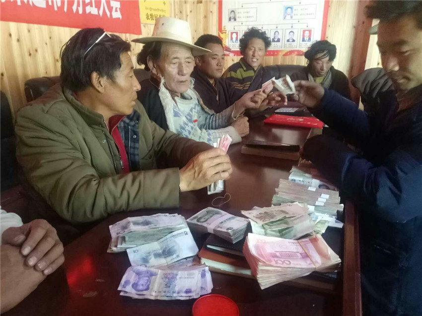 經(jīng)過5個(gè)月的經(jīng)營,收益明顯,21萬元的純收入讓牧民添足了脫貧信心,村兩委將13萬元作為合作社運(yùn)轉(zhuǎn)費(fèi)用,8萬元分紅,再加上去年集體貯草基地純收入2.3萬元,共計(jì)10.3萬元,非貧困戶每戶最少分到了231元,最多分到了1227元,貧困戶每戶最少分到了516元,最多分到了1498元。