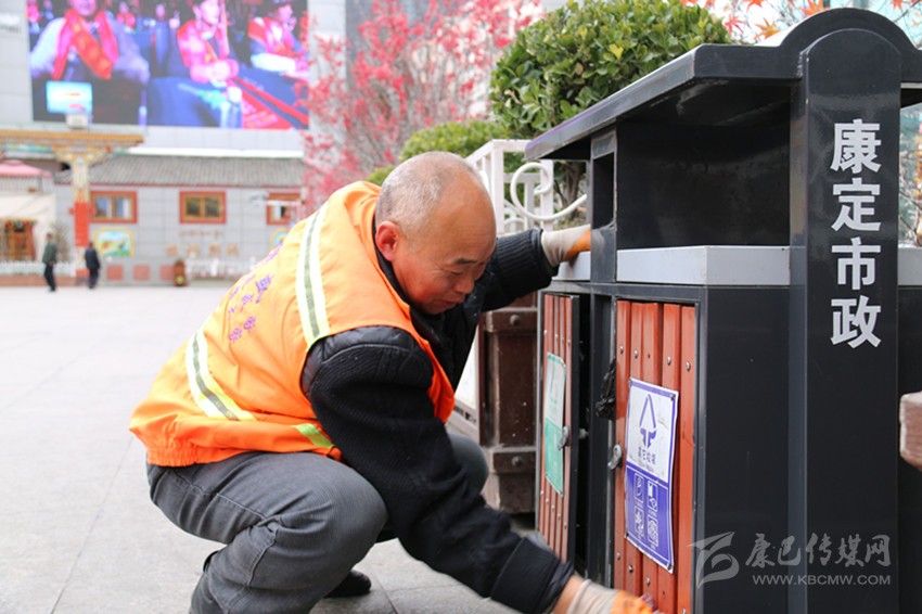 康定的街頭,在匆忙的人群中,那些身著橘黃色保潔服的環(huán)衛(wèi)工人隨處可見(jiàn)。在溜溜城步行街,他們揮動(dòng)著掃帚,掃起果皮、紙屑;在情歌廣場(chǎng),他們拿著抹布一遍一遍地擦拭著垃圾桶;在彩虹橋垃圾收集站點(diǎn),他們將垃圾桶里的垃圾裝上壓縮車(chē),運(yùn)往垃圾處理廠……