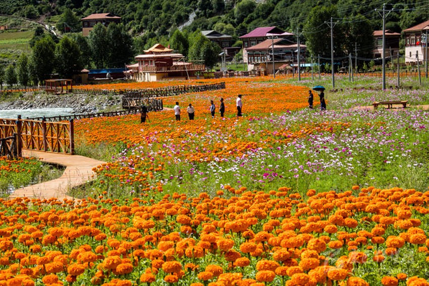 白玉縣麻絨鄉(xiāng)德來村萬壽菊種植基地給當(dāng)?shù)卮迕駧碇赂幌M?本網(wǎng)資料庫圖